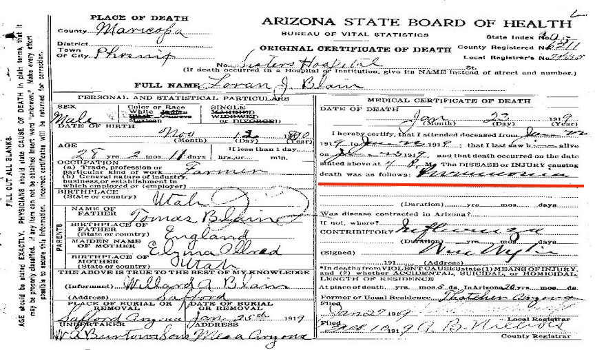 8. Elder Loren Blain died three months after he returned home from his mission in Tennessee, in 1919. He participated in eight baptisms in Blount County. What was his cause of death?