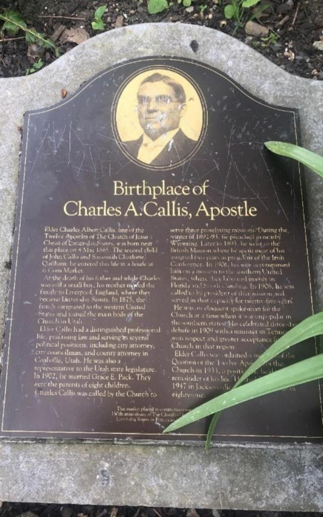 This stone plaque, with the photo and narrative of the life of Charles Callis, sits in St Audoen’s park near the centre of Dublin. Elder Callis is the only person born in the Emerald Isle to become a member of the Quorum of the Twelve Apostles in this dispensation. His service in the Apostleship lasted from 1933 until his death in 1947.