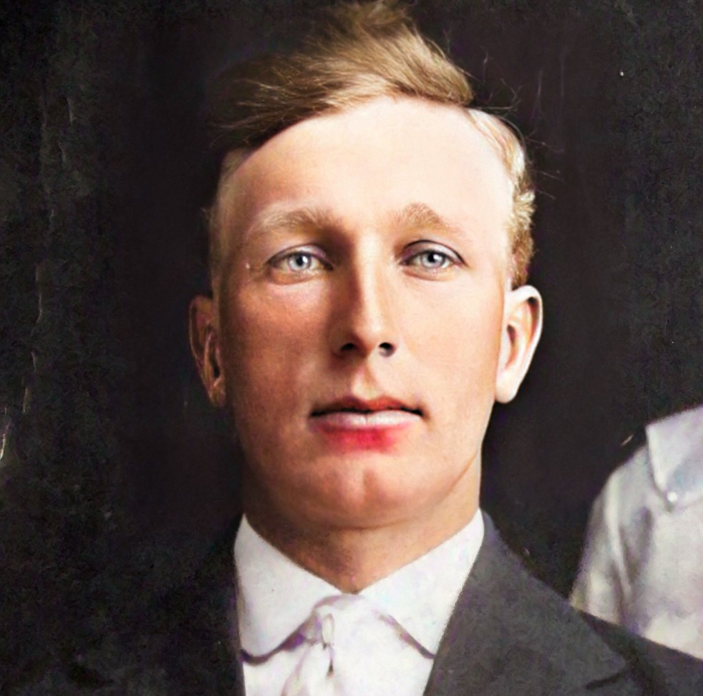 August Emanuel Hedin (1889-1986) served in the Swedish Mission and Southern States Mission from 1914 to 1916. In his mission acceptance letter to Joseph F. Smith, he wrote: “I feel it is a great honor in receiving the call and will be glad to accept the same.” He served a second second mission to the Southern States from 1927 to 1929. He was born in Sweden and immigrated to Idaho as a child. He married in the Salt Lake Temple in 1948. His wife, Mary Hannah Meikle, who also is from Sweden, served in the Southern States Mission from 1924 to 1925. They did not have children. August was a train conductor for 50 years for the Union Pacific Railroad. Elder Hedin baptized and confirmed Cynthia Sawyers a member of The Church of Jesus Christ of Latter-day Saints.